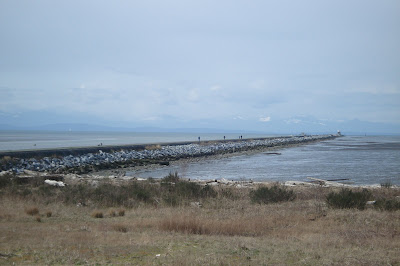 The North Shore can be seen in the distant and Vancouver Island on the horizon. Fantastic views of the Vancouver International Airport were afforded from the jetty. Planes flew overhead as I strolled along the pebbled surface. There were a few Plexiglas shelters along the way where I rested. A sewage treatment facility and an outhouse lie at the end. Upon arrival I made a significant contribution to the complex ecosystem, gazed at the open skies, and then headed back.