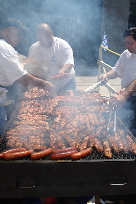 I did not eat at the Italian food stalls, holding out for some Greek instead. In conjunction with BC's 150th birthday anniversary celebrations, Greek Day was taking place in Kitsilano. A large portion of West Broadway was closed down to vehicular traffic, allowing throngs of people to walk about freely on the street. Arts and crafts, children's activities, live performances, appearances by politicians such as Premier Gordon Campbell, Mayor Sam Sullivan, and Attorney General Wally Oppal, all played second fiddle to the main event - the food and wine. I had pork souvlaki and loukoumades (Greek mini donuts) to satisfy my appetite, before heading home.