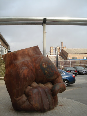 There is also a Nike Basketball facility, where a crowd had gathered to watch the action on court. A large picture of Lebron James adorns the exterior as China's basketball sensation Yao Ming is sponsored by rival Reebok. Nike, Reebok, and Adidas with its "Impossible is Nothing" slogan are busy combating China's homegrown athletic apparel company Li-Ning and their incomparable catchphrase "Everything is Possible". Fortunately, the contemporary artwork on display in 798 shows much more creativity.