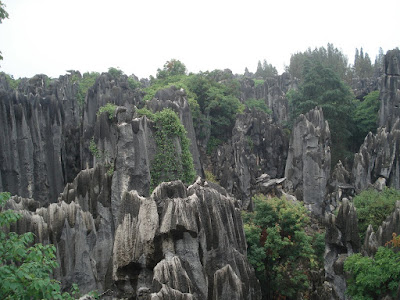 270 million years in the making, the Shilin Stone Forest is a collection of odd rock formations jutting up from the ground. Located in Yunnan province, Shilin was an easy bus ride away from Kunming. I remained steady as a rock when I entered the forest made of stone. All around me were the strange shapes. It was a dark and rainy day, so the formations seemed even more foreboding. Legend has it that the gods shattered the mountains into smaller fragments so that lovers could have some privacy among the rocks. The scientific explanation is that the area was an ocean before, and when the water subsided these rocks were left behind.