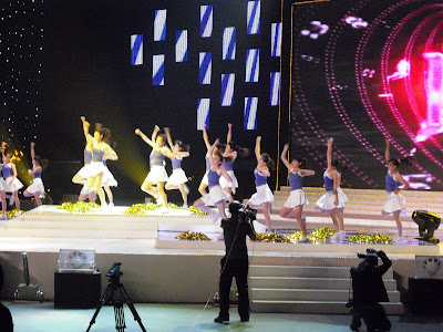 I rendezvoused with another colleague directly on the subway, notifying him when I was nearing the stop he was at so that he could hop aboard. Unfortunately, we were in different compartments at opposite ends of the train. At each successive stop we jumped out and walked towards each other, before getting back on the train just before the doors slammed shut. A couple of stops later we converged, and he gave me my ticket. The event was called the Kanebo 7 Beauty Pageant. We got off at the appropriate subway station, and jumped into an auto rickshaw-like vehicle that dropped us of at the entrance to the Olympic Sports Centre. The show was starting in minutes. We frantically sprinted through the parking lot before entering the stadium where the event was being held.