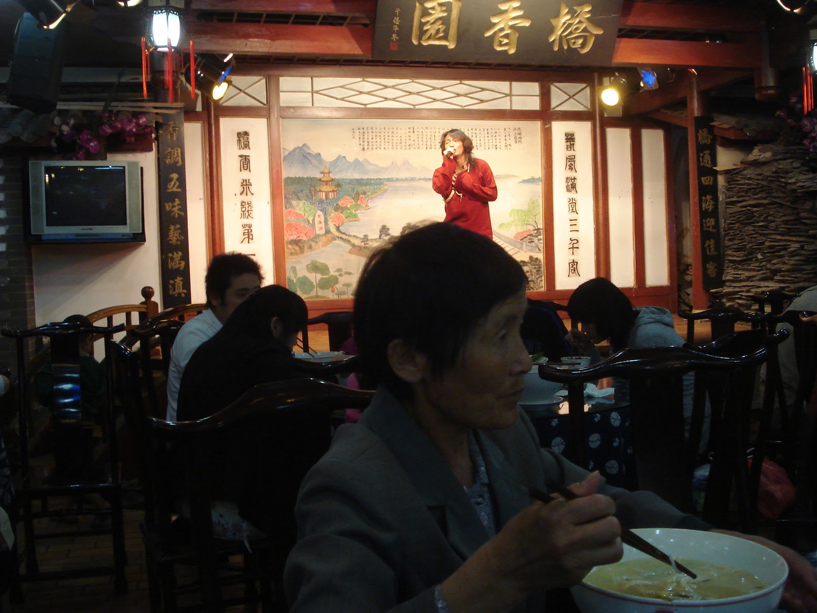 The ratio of staff to customers is 1:2 but most of the workers are clustered into groups chatting with each other or solitary types who are often found to be staring into space. It is hard to attract the attention of a waiter without yelling at them, but that is not my style. Sometimes there is a glimmer of recognition that I am motioning for them, but after 15 minutes have passed I realize that this is not the case. Eventually, the staff all sit down at a nearby table and start eating their meal. One notices that I am still trying to attract their attention. I ask for the bill and am given the menu. I ask for the bill and am given a toothpick. I ask for the bill and am given another bottle of beer. I ask for the bill and am given the bill. The figures are within a reasonable range of my estimates. Similar to when I ordered food I am under pressure now. The waiter hovers near me, fixing me with another impatient stare as I struggle to provide exact change. I decide to give him a 100 RMB note instead. Still eyeing me suspiciously, the waiter holds up the note and examines it to see if it is counterfeit before walking back to the counter to retrieve my change.