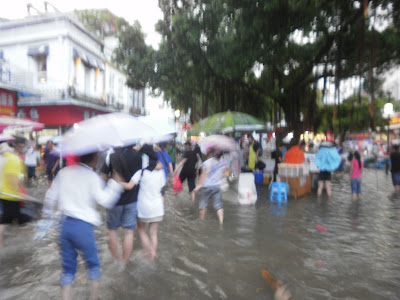 Like a scene from an apocalyptic movie , thousands of souls crowded against the gates, clamouring to escape the calamity of being drenched by rain water. I selflessly changed course and went for a coffee instead, waiting several hours for the rest of the crowd to be evacuated safely before leaving the island myself.
