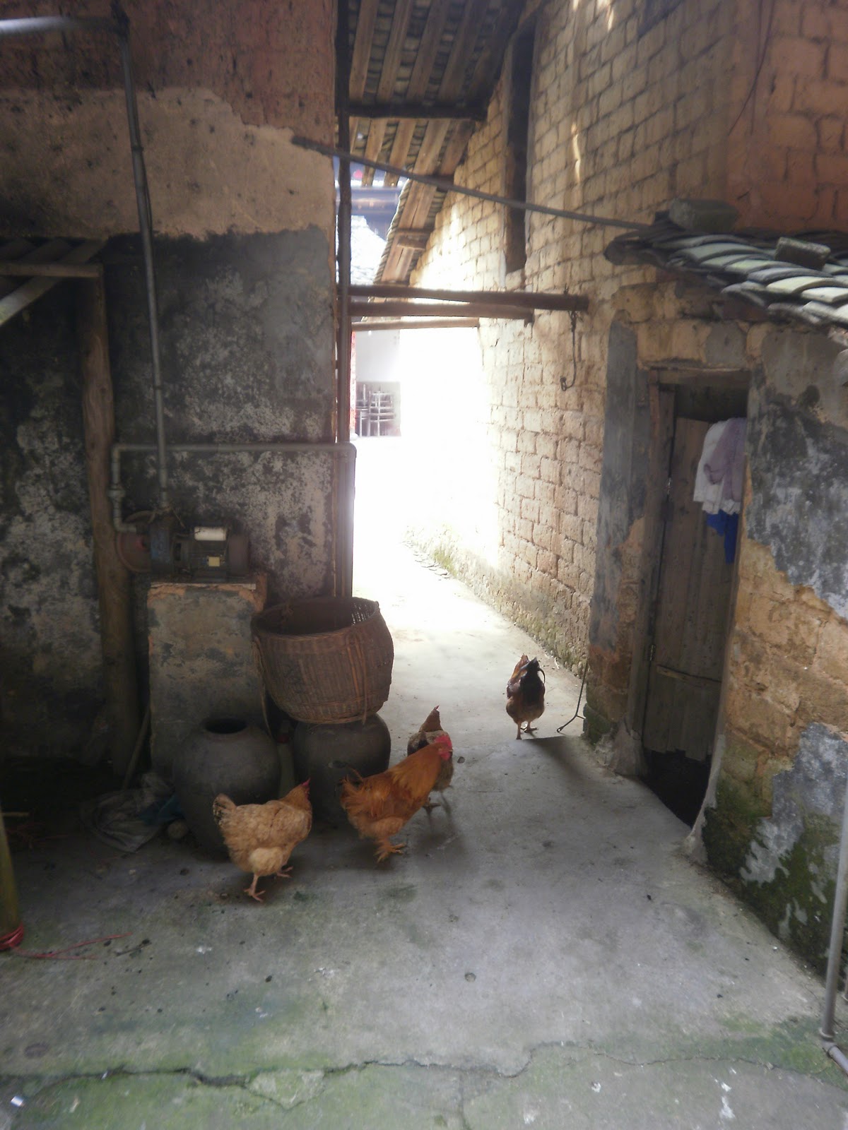 There is a central courtyard where gatherings for events like marriages and festivals can take place. Wells, temples, storehouses, and other facilities are also shared by all the inhabitants. Livestock relax on the ground floor, while people go about their daily business. Rickety staircases lead from one level to the next and the wooden floorboards of the corridors creak underfoot.