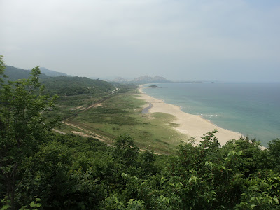 We had to climb a hill to reach the viewpoint, passing the cleverly labelled "Last Restroom" on the way up to the summit. I was able to glimpse North Korea for the second time, with the first being from atop the Great Wall in the Chinese border outpost of Dandong. I used the telescope to get a closer look but could not see much apart from a few foot soldiers and some supply trucks. The scenery was a blend of green hills, sandy beaches, blue skies, turquoise waves, and barbed wire. Chain link fencing on the coastline was an eyesore, but an integral part of the security measures taken by both sides to prevent hostiles from intruding into their lands.