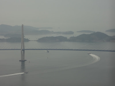 I summited several of the ridges of Yeodalsan and admired the view from each peak. Although farther away than the eye could see, I could hear the distant roars of the Formula One race cars as they whizzed around the circuit during the qualifying session. I ran into a couple of English teachers at the top. One of them was talking about a cartoon she saw. There were a series of pictures of the same Korean female at ages 15, 20, 30, 40, and 50. From ages 15-40 she looked like a gorgeous twenty-something and then suddenly transformed into a curly haired old lady at 50.