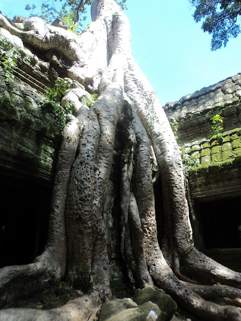 On Day 1 we focused on the main temples, beginning with the famed Angkor Wat and then moving on to Bayon and Angkor Thom. Angkor Wat is located a little over 5km from Siem Reap, to the north of Tonle Sap. In Ta Prohm the trees have rooted themselves around the temples and become one with them, like tattoos on flesh.