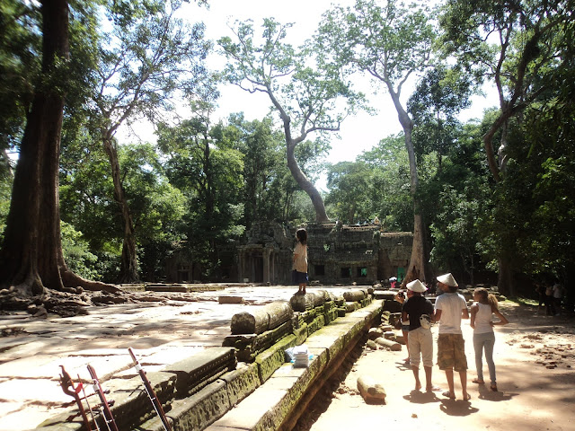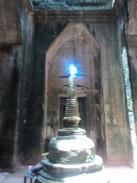 On Day 3, we woke up early to see the sun rise behind the magnificent triple stupas of Angkor Wat that appear on Cambodia's national flag. A heavy contingent of tourist and monks was also present. As has been the case every time I have woken up early to see a sunrise, there was none perceptible to the human eye as the sun was shrouded by a heavy cloud cover.