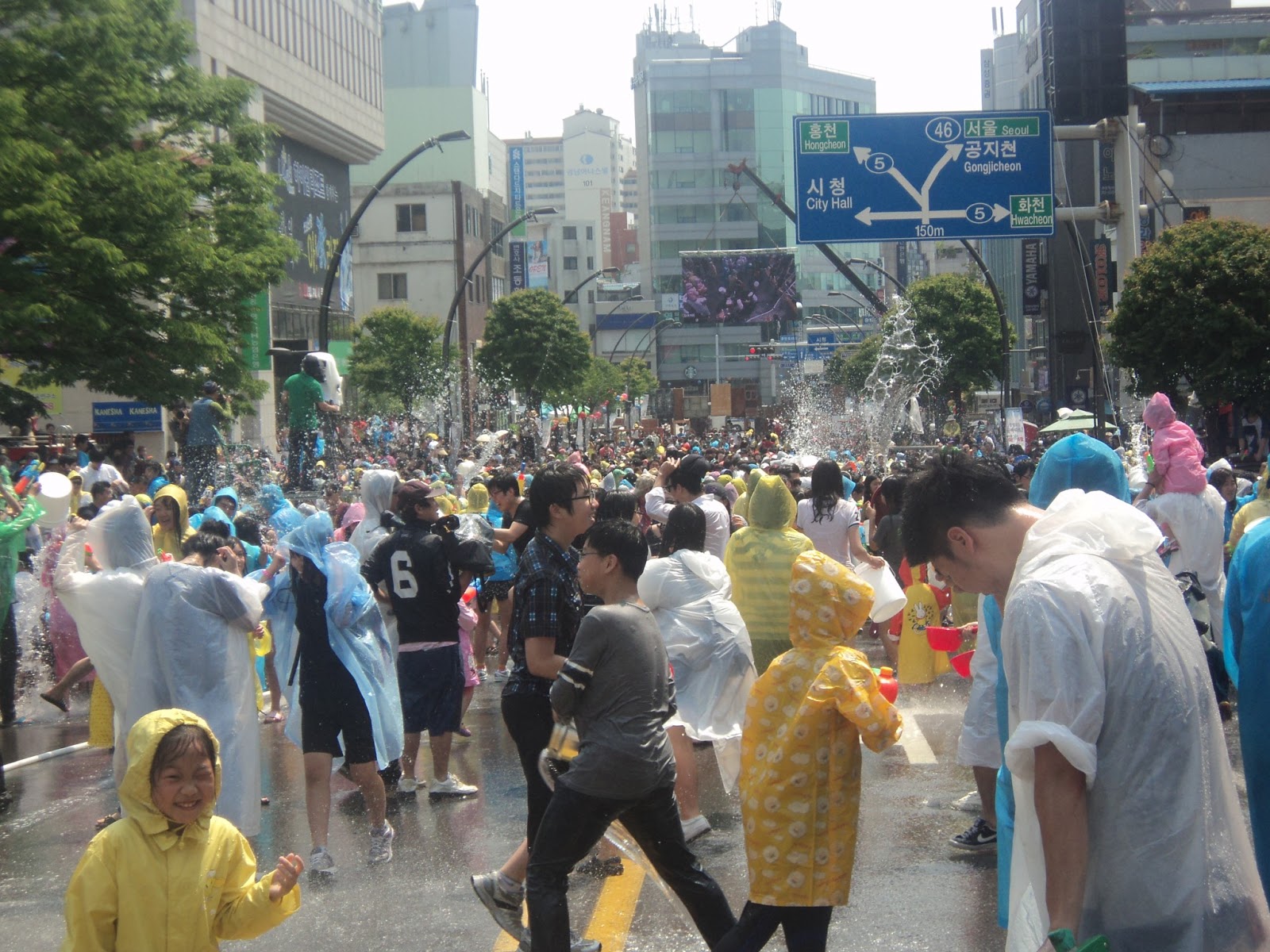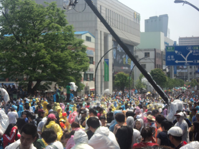 What was supposed to be a mime festival broke out into a full fledged water fight on Chuncheon's main thoroughfare. Buckets of water were provided and the citizens let loose with much gusto. It was a welcome change from the stiff necked formality of Seoulites. One courageous little boy gingerly edged towards me, aimed his water pistol in my direction, gently squeezed the trigger, and ran away. His aim was true, as I had to wipe my glasses dry to regain my vision after his strike.