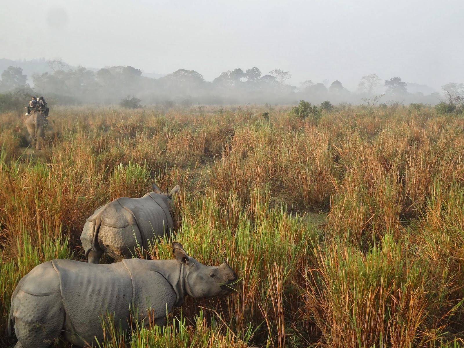 The next day I woke at 530 am to go on an elephant safari. The start point was a half an hour jeep ride away from the lodge. I sat atop the elephant. The giant beast slowly ate its way through the grasslands, stopping at the behest of its mahout whenever rhinos or other wildlife were within breathing distance.