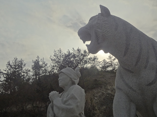 Although science has washed away the mysteries behind the magical sea parting, the tale behind the tidal harmonics remains enchanting. In the ancient days, many tigers were said to roam Jindo and feast on the delicious locals. Frightened villages fled to Modo for safety reasons, but an old grandmother was inadvertently left behind.