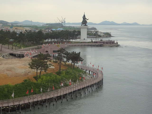 Apart from the sea parting phenomena, Jindo is also famous in Korea for its namesake breed of dogs. The Jindo dogs are heralded for their loyalty, intelligence, and courage. Protected under the auspices of Cultural Properties Protection Act and declared a national treasure, this particular breed of dog does not appear on Korean dinner tables. As I strolled through the back alleys of a Jindo neighbourhood, many yards had the dogs caged or tied up within them. They roamed about freely on the grounds of a Buddhist temple though, the look in their eye more wolfish than domesticated. I returned their gaze before continuing on my journey up a hill to get a panoramic view of Jindo.